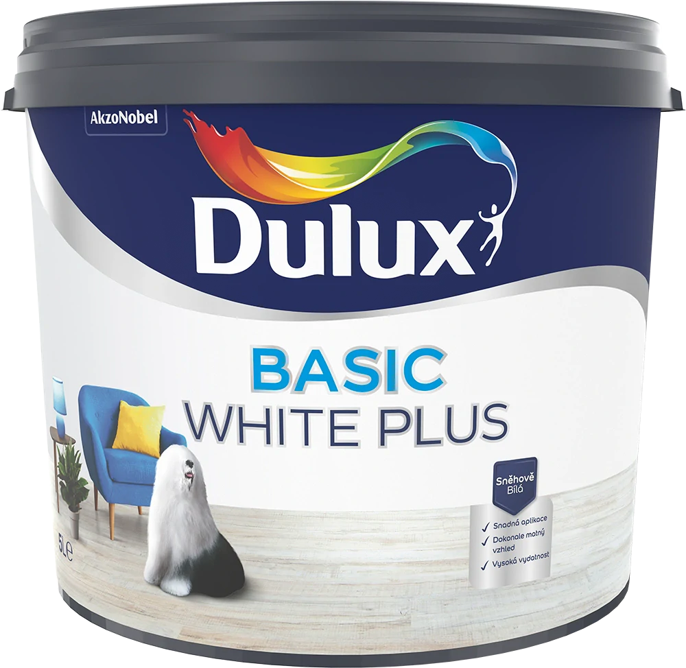 Dulux Basic White Plus je matná, zářivě bílá, akrylátová emulzní barva určená k dekorativním a ochranným nátěrům stěn a stropů v interiéru. Vyrábí se v nenormalizovaném bílém odstínu s bělostí 97%. Díky nízkému obsahu těkavých organických sloučenin je bez zápachu. Barva se snadno nanáší, má velmi dobrou kryvost a díky minimálnímu odkapávání snižuje tvorbu nečistot. Antireflexní vlastnosti barvy Dulux Basic White Plus dodávají vymalovaným povrchům dokonale matný vzhled a eliminují povrchové nedokonalosti.